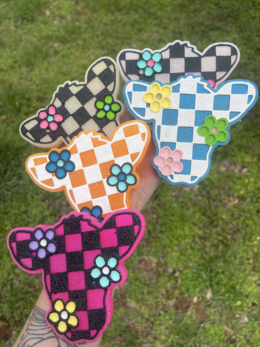 Checkered Cow Head with Flowers - Silicone Freshie Mold