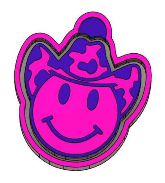 Smiley with cowprint cowboy hat- Silicone Freshie Mold
