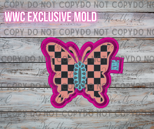 Concho Checkered Butterfly; WWC EXCLUSIVE MOLD - Silicone Freshie Mold