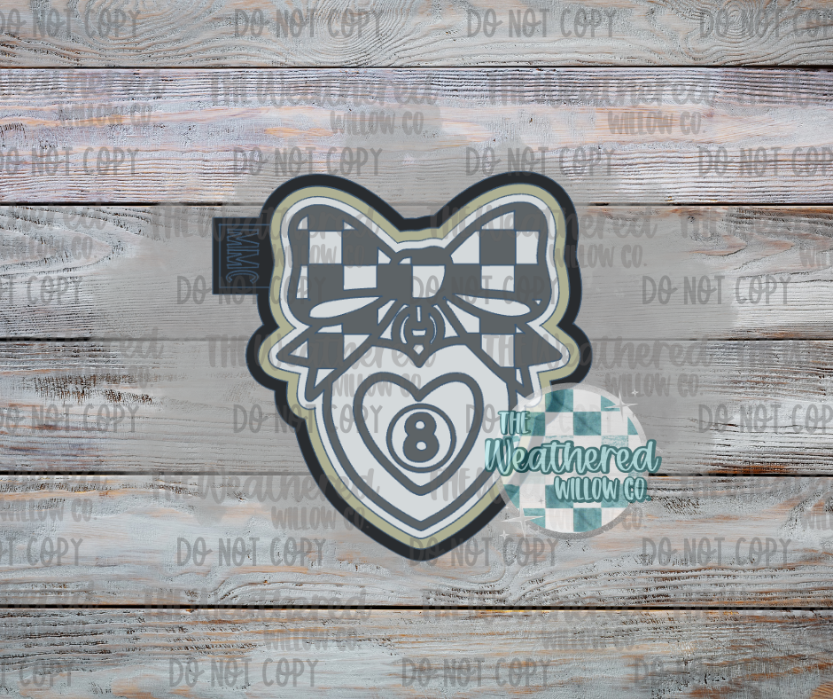 8 Ball heart locket with checkered bow - Silicone Freshie Mold